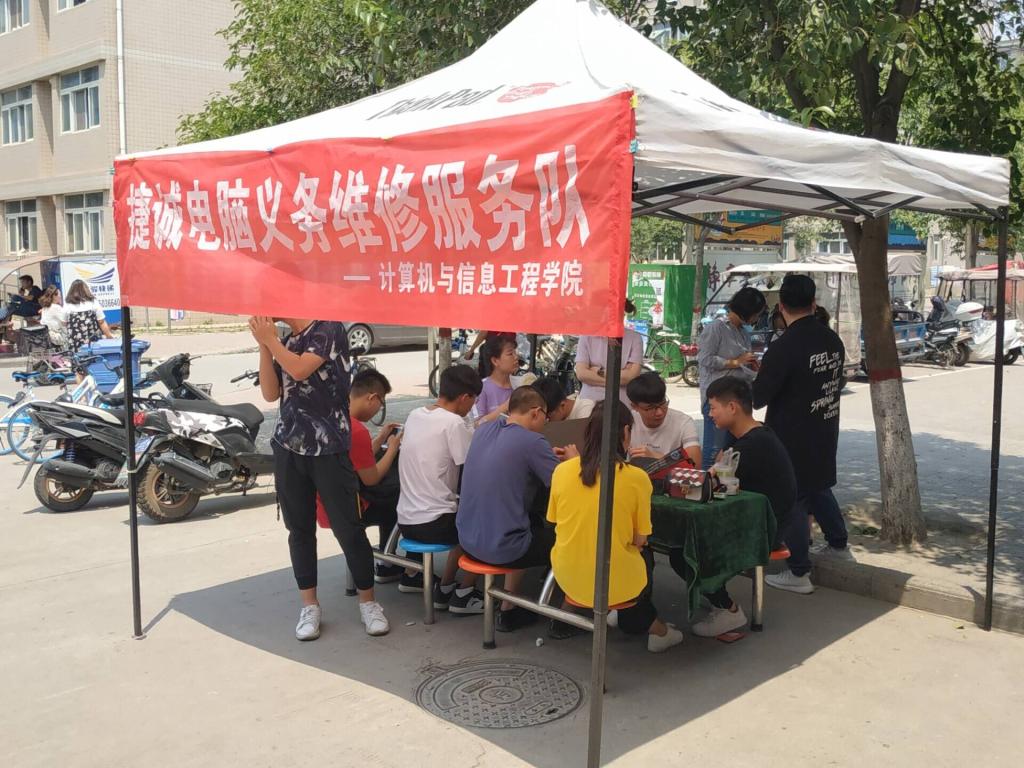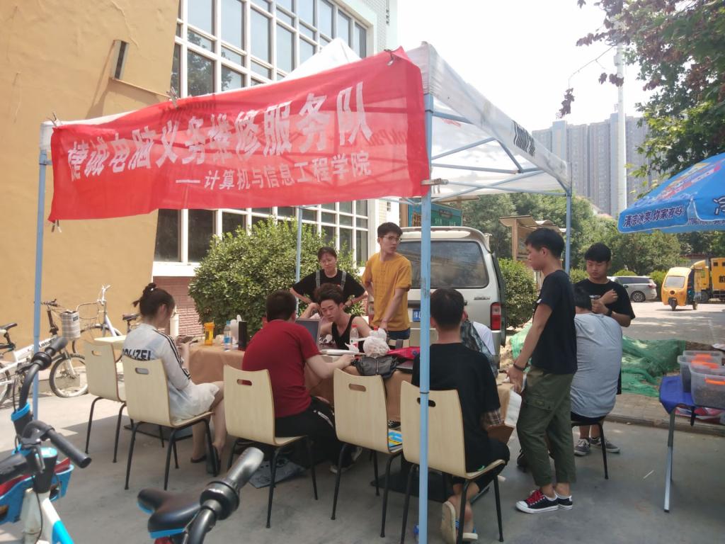 时值热夏,威廉希尔也充斥着燥热的气氛,热风吹过,太阳高挂在头顶上,人微少。但我院“捷诚义务维修服务队” 的各位志愿者们秉承着服务师生的宗旨,不畏骄阳于5月25日上午如期到达东西区餐厅,为大家竭诚服务,解决各种电脑问题。