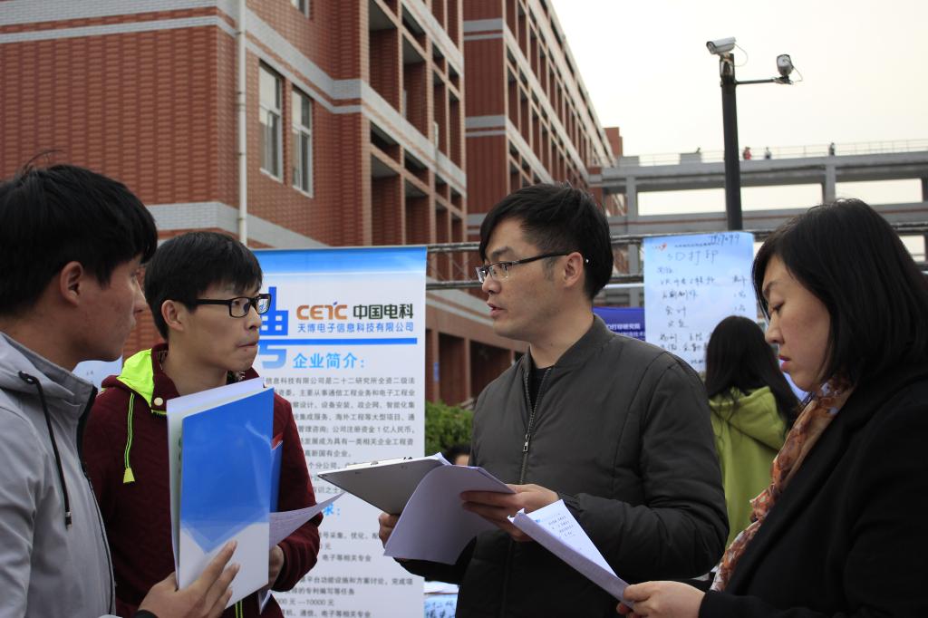 2017年11月21日下午15:00整,我院承办的2018届毕业生IT专场招聘会在A14号楼东门拉开了帷幕。我院潘红院长、党总支李文波书记、党总支汤沛副书记以及学院全体辅导员参加了本次招聘会。