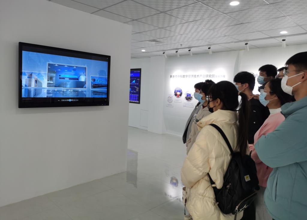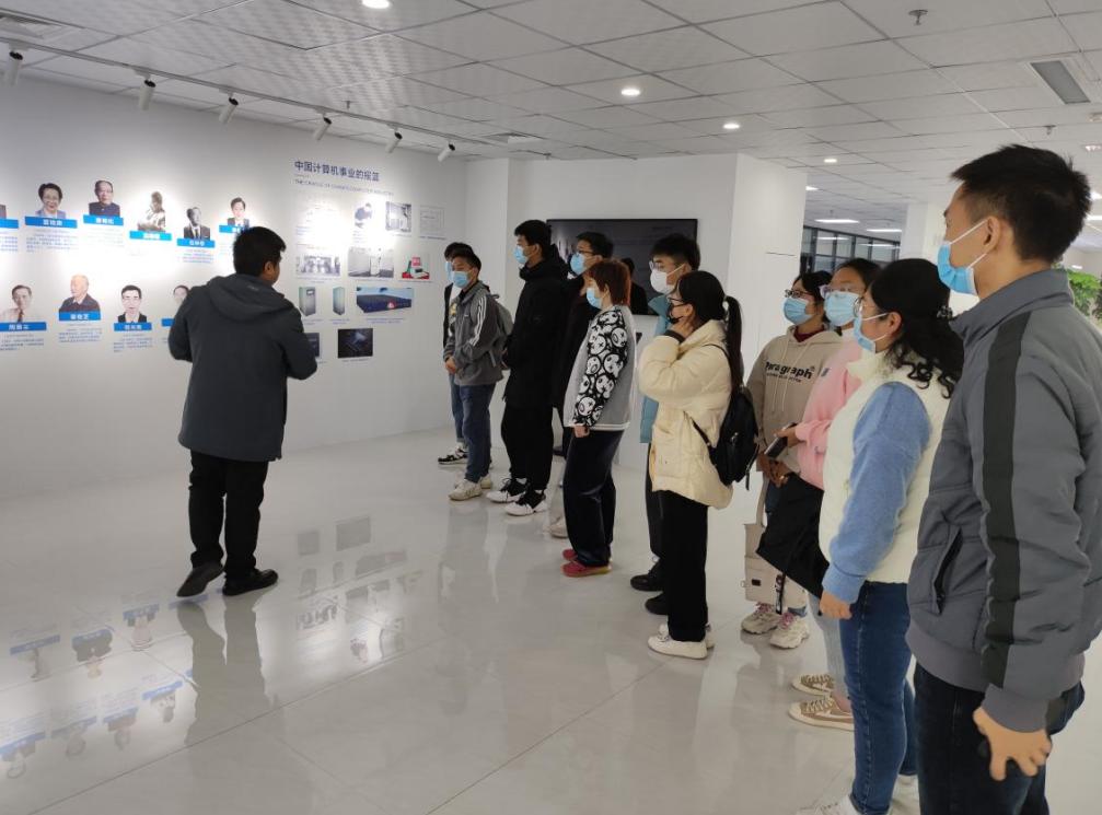 在研究院卢老师的带领下,师生参观了新乡市中科数字经济技术产业研究院的工作环境、研究所对新乡智慧城市建设的众多贡献和研究院获得的各项专利展览、中科量子数据处理中心等场所。通过卢老师细心地讲解,师生们系统的了解了中国计算机事业、大型数据处理、中国芯片研发等各项重大事业从无到有的突破式发展历程,也看到了一位位专业工作人员对超大量的档案数据进行整理、数据库录入及加密处理的过程。同时,卢老师对大家提出的问题进行了耐心、专业的解答。同学们都感叹当前计算机事业发展的速度之快,了解到计算机对城市各项建设中发挥着越来越大的作用。