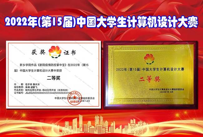 2022年(第15届)中国大学生计算机设计大赛国赛于7-8月间按照不同类别在山东大学、东北大学、厦门大学、东南大学等高校举行,我校选送的移动应用开发作品《新院疫情防控掌中宝》在国赛6600多件作品中通过激烈角逐取得了国赛二等奖的优异成绩。